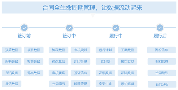 以提供从合同起草、审批、签订、执行、归档、统计等全生命周期的服务